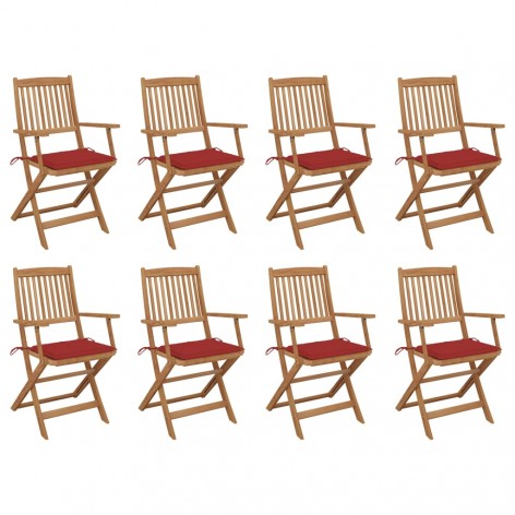 Prezzo scontato Sold out Prezzo regolare 417,90 € -5% Prezzo 397,01 € Sedie da Giardino Pieghevoli 8 pz con Cuscini Massello Acacia