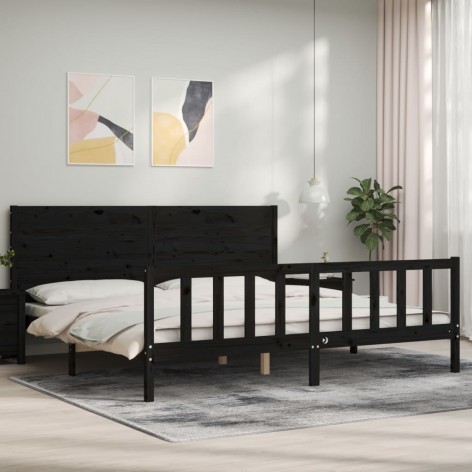 Prezzo scontato Sold out Prezzo regolare 181,90 € -5% Prezzo 172,81 € Giroletto con Testiera Nero 200x200 cm in Legno Massello