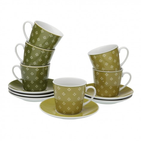 Prezzo scontato Sold out Prezzo regolare 20,17 € -5% Prezzo 19,16 € Set di 6 Tazze con Piatto Versa verdi Porcellana