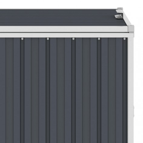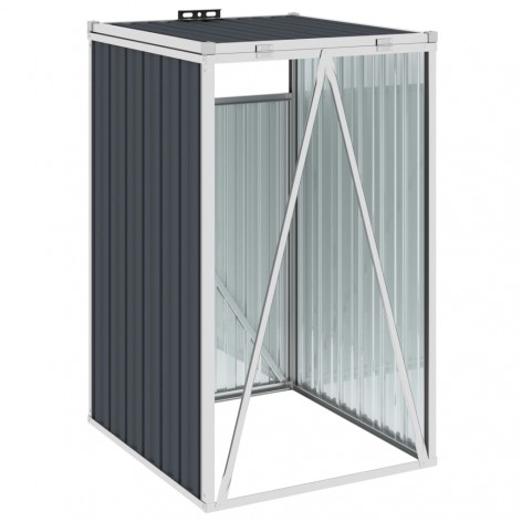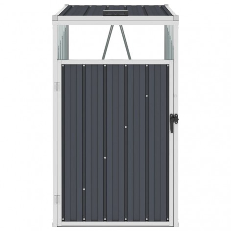 Questo capanno è realizzato in robusto acciaio zincato, che lo rende molto stabile e di facile manutenzione. È dotato di anta di apertura frontale e di maniglia di plastica nera per consentire di rimuovere e svuotare facilmente la pattumiera. Il copri bidone ha un coperchio di sollevamento che può essere aperto per depositare facilmente i rifiuti.