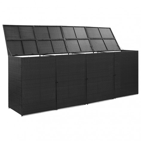 Copribidone Quadruplo Spazzatura Nero 305x78x120 cm Polyrattan