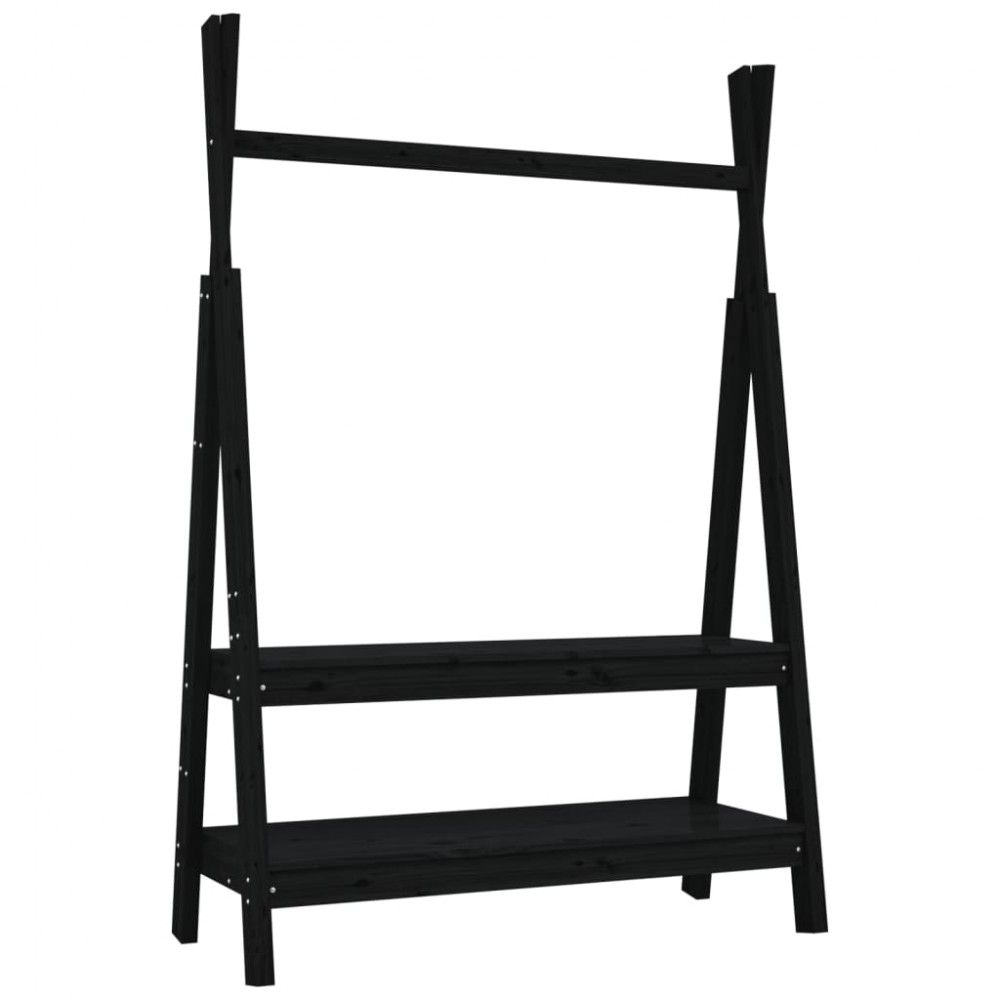 Appendiabiti Nero 100x45,5x150 cm Legno Massello di Pino