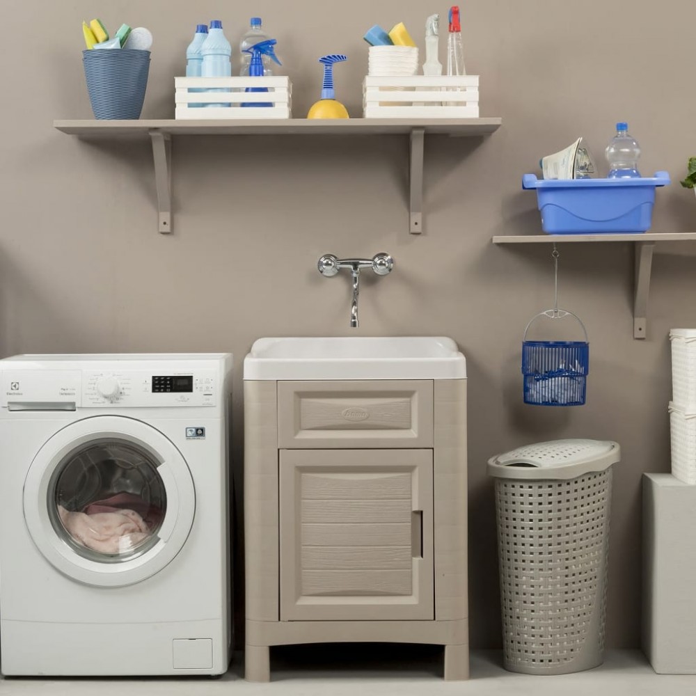 Create un ambiente ordinato e suggestivo nella vostra lavanderia con questo mobiletto.