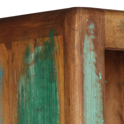 La credenza è realizzata in legno massello di recupero proveniente da travi, pavimenti e travi di sostegno di vecchi edifici in demolizione e può essere costituita da diversi tipi di legno come il pino, il teak, il faggio, la quercia, il cedro, il mango, l'acacia, etc. Il legno di recupero mantiene le caratteristiche dei vari tipi di legno originari ed è già invecchiato, stagionato ed essiccato, per cui non si restringe o deforma. La raffinata artigianalità e le stupende venature del legno rendono ogni pezzo unico e leggermente diverso da tutti gli altri. I segni di usura e le diverse venature testimoniano la ricca storia del legno e donano un aspetto caldo e autentico alla credenza. Ogni fase del processo di lavorazione, dalla lucidatura alla verniciatura fino alla laccatura, viene eseguita con la massima cura.