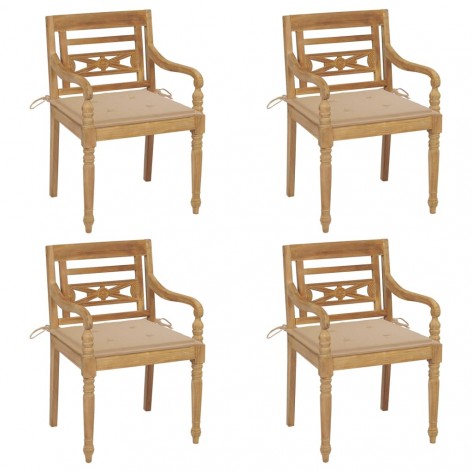 Prezzo scontato Sold out Prezzo regolare 515,90 € -5% Prezzo 490,11 € Sedie Batavia con Cuscini 4 pz in Legno Massello di Teak