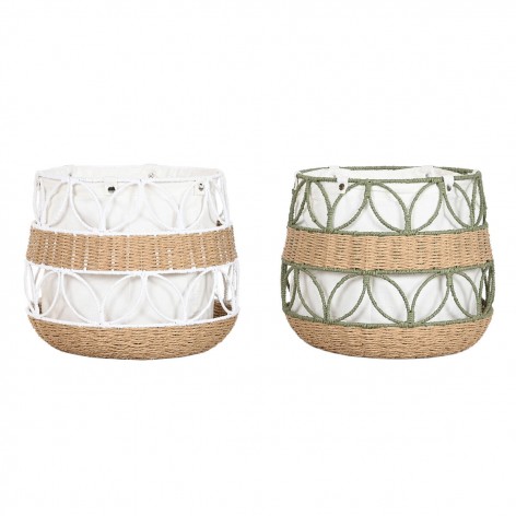 Prezzo scontato Prezzo regolare 74,00 € -5% Prezzo 70,30 € Cesta Decorativa Home ESPRIT Bianco Verde Fibra naturale (2 Unità)
