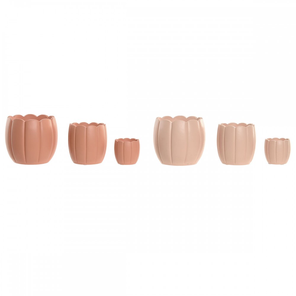 Vaso Home ESPRIT Terracotta Rosa chiaro Cemento Shabby Chic 15 x 15 x 13 cm (3 Pezzi) (2 Unità)