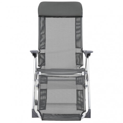 Sedie Pieghevoli da Campeggio 2 pz Poggiapiedi Alluminio Grigio
