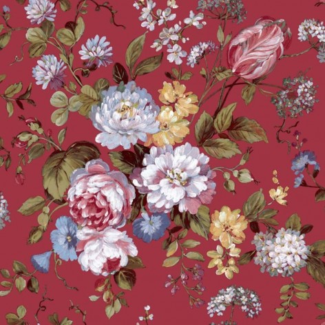 Questa carta da parati in rosso e blu con grandi fiori è parte della collezione Blooming Garden 6 Big Flowers della Noordwand, è caratterizzata da un'ampia varietà di carte da parati con stampe botaniche dallo stile moderno a quello romantico, e in splendidi colori alla moda.
