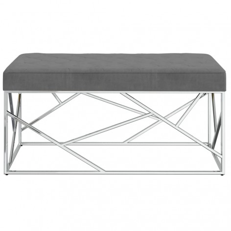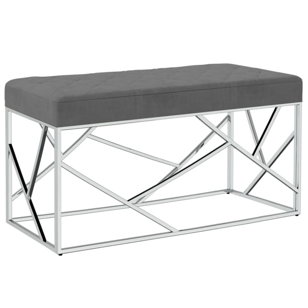Panca 97 cm Grigio Scuro in Velluto e Acciaio Inossidabile