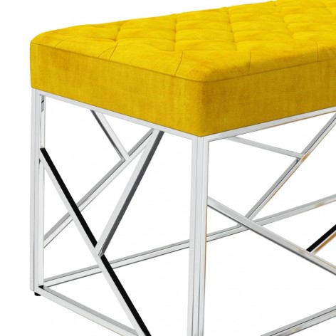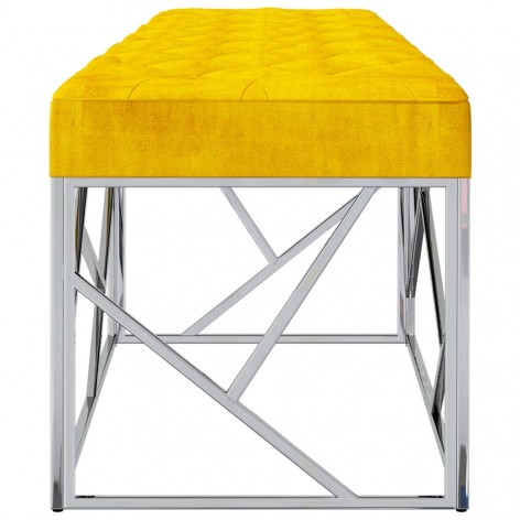 Panca 97 cm Giallo Senape in Velluto e Acciaio Inossidabile