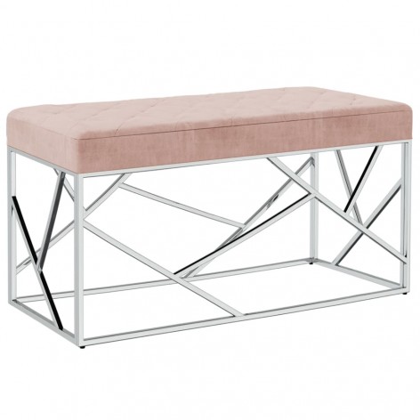 Panca 97 cm Rosa in Tessuto e Acciaio Inossidabile