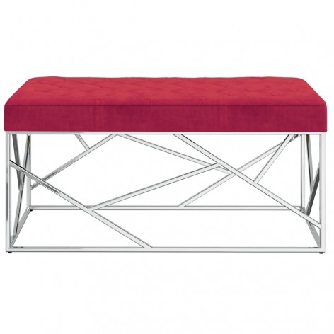 Panca 97 cm Rosso Vino in Velluto e Acciaio Inossidabile