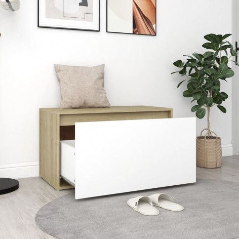 Panca da Ingresso 80x40x45 cm Bianco e Rovere Sonoma Truciolato