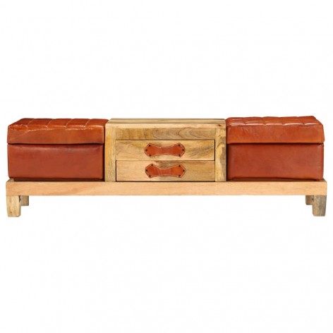 Cassapanca in Legno Massello di Mango e Vera Pelle 120x36x36 cm