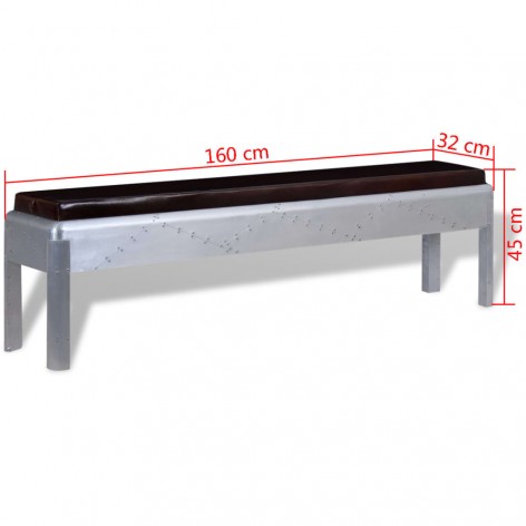 La vera pelle di capra imbottita è morbida al tatto e si aggiunge al suo stile industriale unico. L'imbottitura rende confortevole la seduta, mentre la solida base e le gambe in alluminio lucidato conferiscono alla panca il suo aspetto iconico da aviatore e la rendono stabile e robusta.
