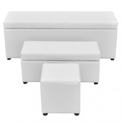 Il set contiene 2 panchine lunghe di stoccaggio e 1 poggiapiedi. Realizzato in pelle artificiale di alta qualità, è la scelta ideale per completare il tuo arredamento.