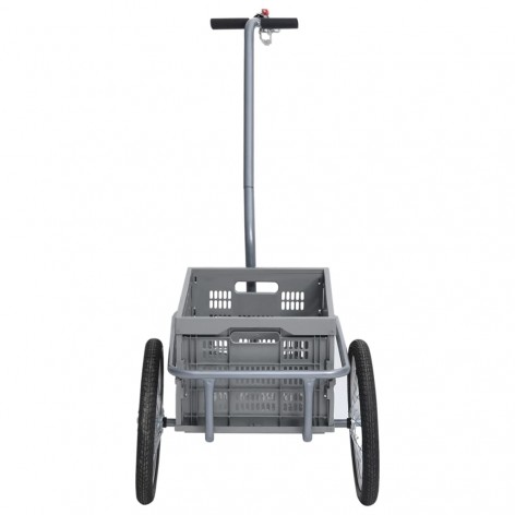 Questo rimorchio per biciclette è realizzato in metallo che lo rende molto robusto e resistente. E' inoltre caratterizzato da un attacco a sfera per permettervi di agganciarlo velocemente alla bici. Equipaggiato con 2 impugnature sulla barra di traino, questo rimorchio può essere utilizzato anche come carrello a mano. I riflettori colorati ad alta visibilità sono stati progettati per fornire maggiore sicurezza. Grazie al contenitore di trasporto rimovibile, dalla grande capacità di carico di 150 kg, questo rimorchio risulta ideale per trasportare generi alimentari, attrezzi da campeggio, articoli sportivi o qualsiasi altro accessorio necessario da portare con voi.