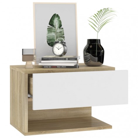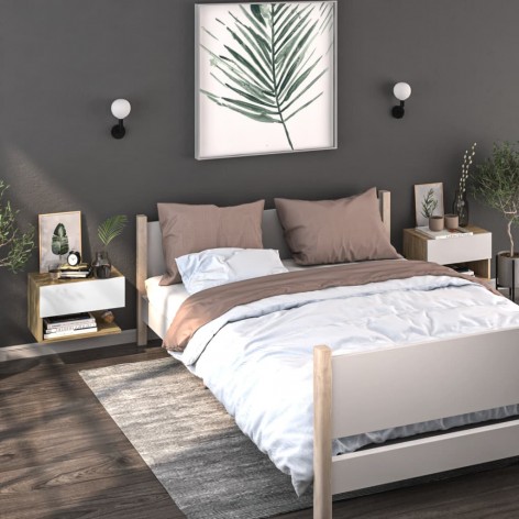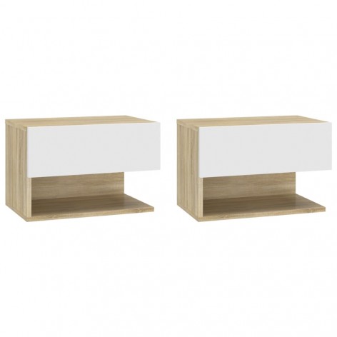 Comodini da Parete 2 pz Bianco e Sonoma in Legno Ingegnerizzato