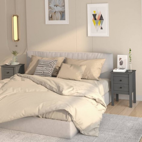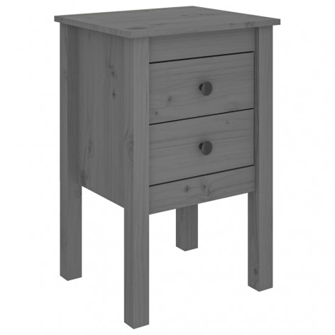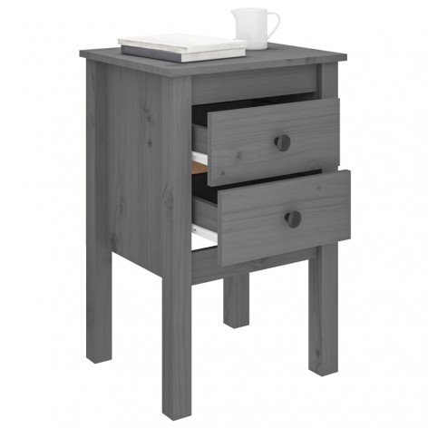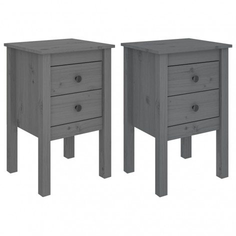 Comodini 2 pz Grigia 40x35x61,5 cm in Legno Massello di Pino