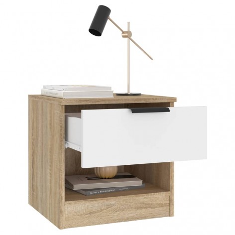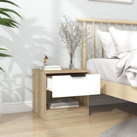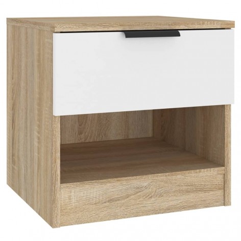 Comodino Bianco e Rovere Sonoma in Legno Multistrato