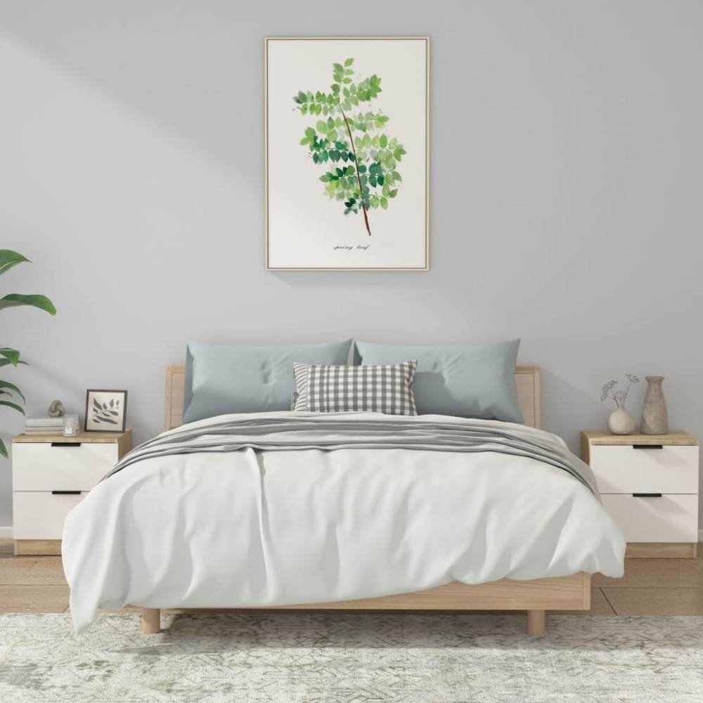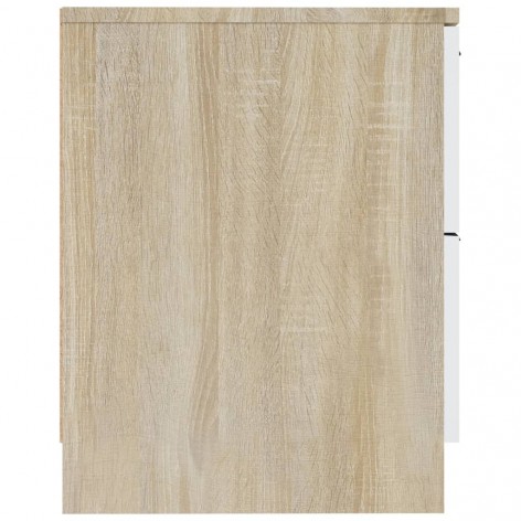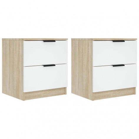 Comodini 2 pz Bianchi e Rovere Sonoma in Legno Multistrato