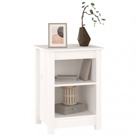 Comodino Bianco 40x35x55 cm in Legno Massello di Pino