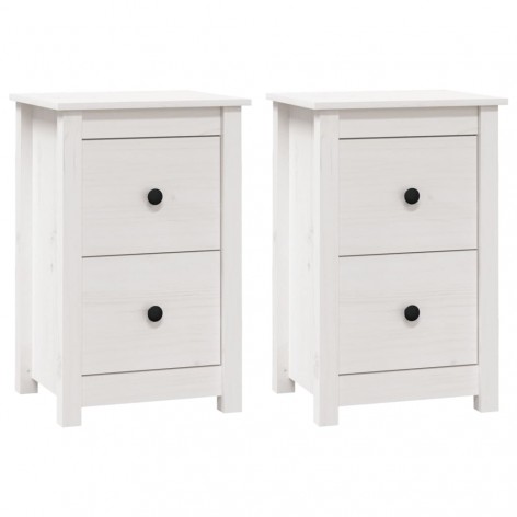 Comodini 2 pz Bianca 40x35x61,5 cm in Legno Massello di Pino