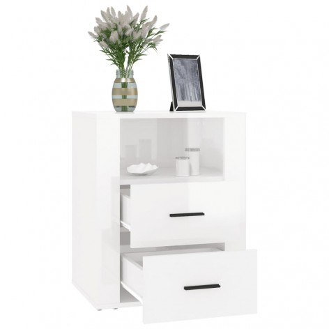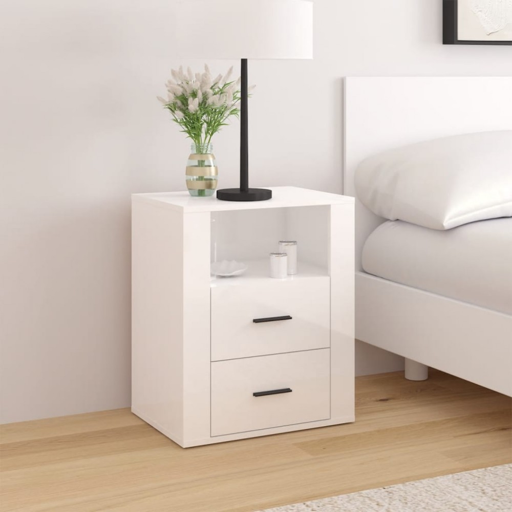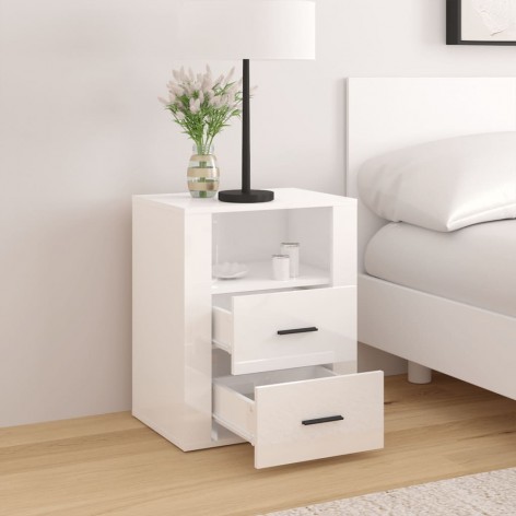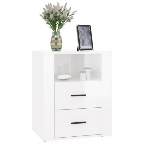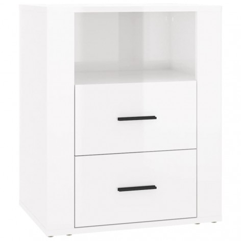 Comodino Bianco Lucido 50x36x60 cm in Legno Multistrato