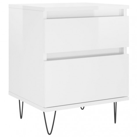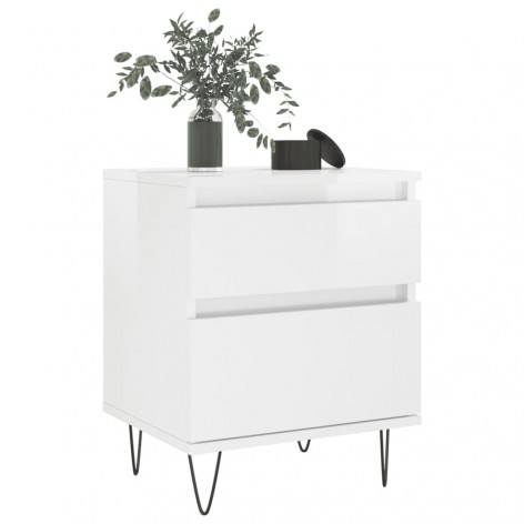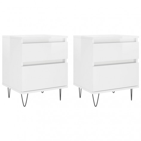 Comodini 2pz Bianco Lucido 40x35x50 cm in Legno Multistrato