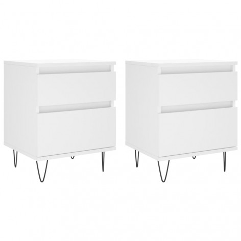 Comodini 2pz Bianchi 40x35x50 cm in Legno Multistrato