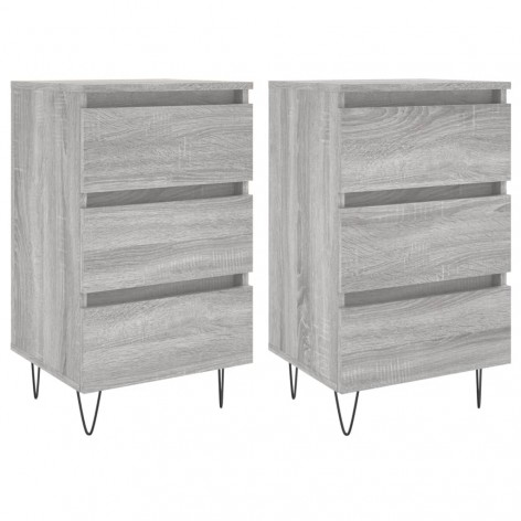 Comodini 2pz Grigio Sonoma 40x35x69 cm in Legno Multistrato
