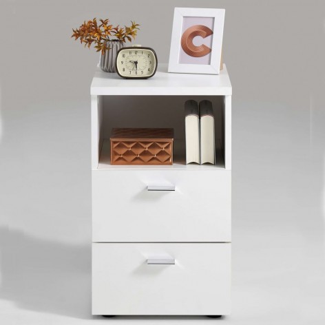 FMD Comodino con 2 Cassetti e Scomparto Aperto Bianco