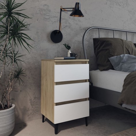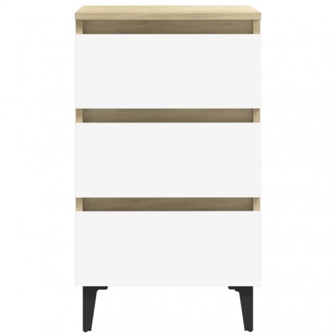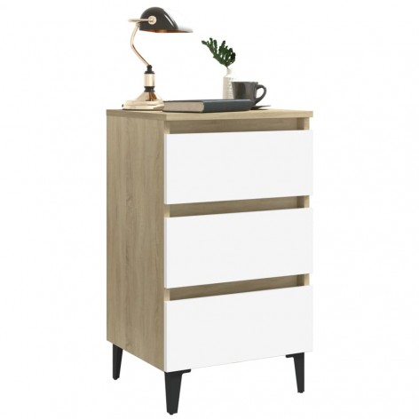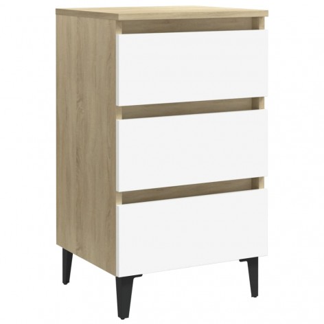 Comodino Gambe Metallo 2 pz Bianco e Rovere Sonoma 40x35x69cm