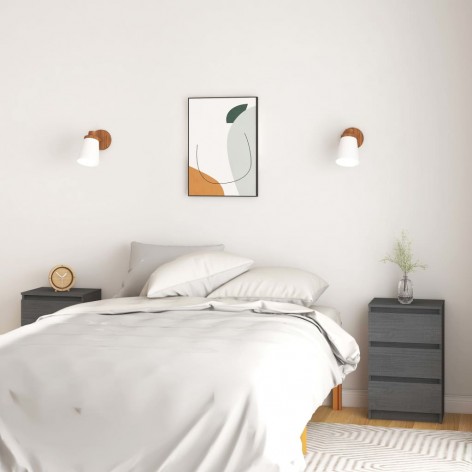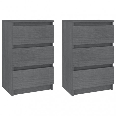 Comodini 2 pz Grigi 40x29,5x64 cm in Legno Massello di Pino