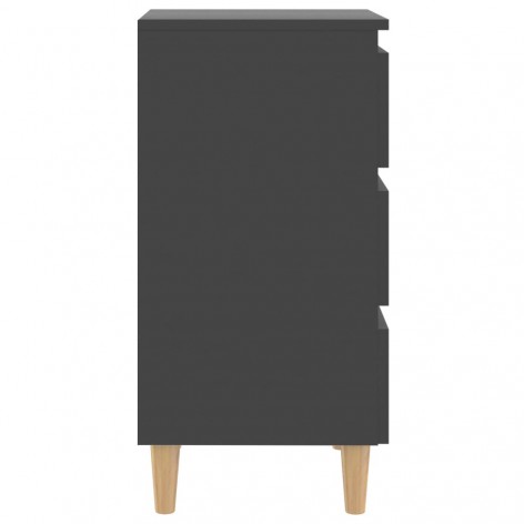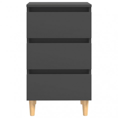 Comodino con Gambe in Legno Massello Grigio 40x35x69 cm