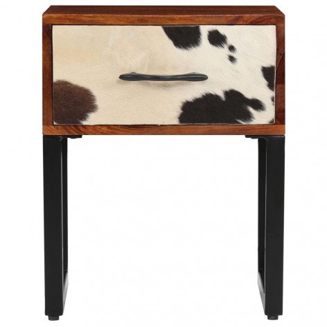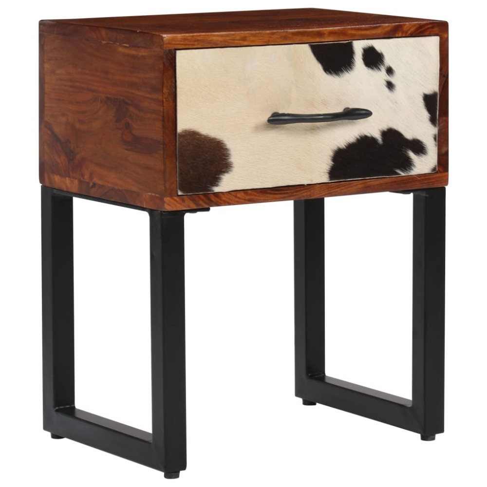 Comodino in Legno Massello di Sheesham e Pelle 40x30x50 cm