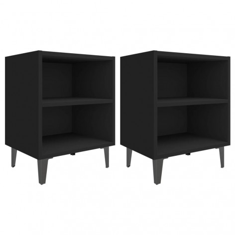 Comodini con Gambe in Metallo 2 pz Neri 40x30x50 cm