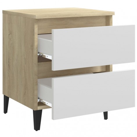 Comodino Bianco e Rovere Sonoma 40x35x50 cm in Truciolato