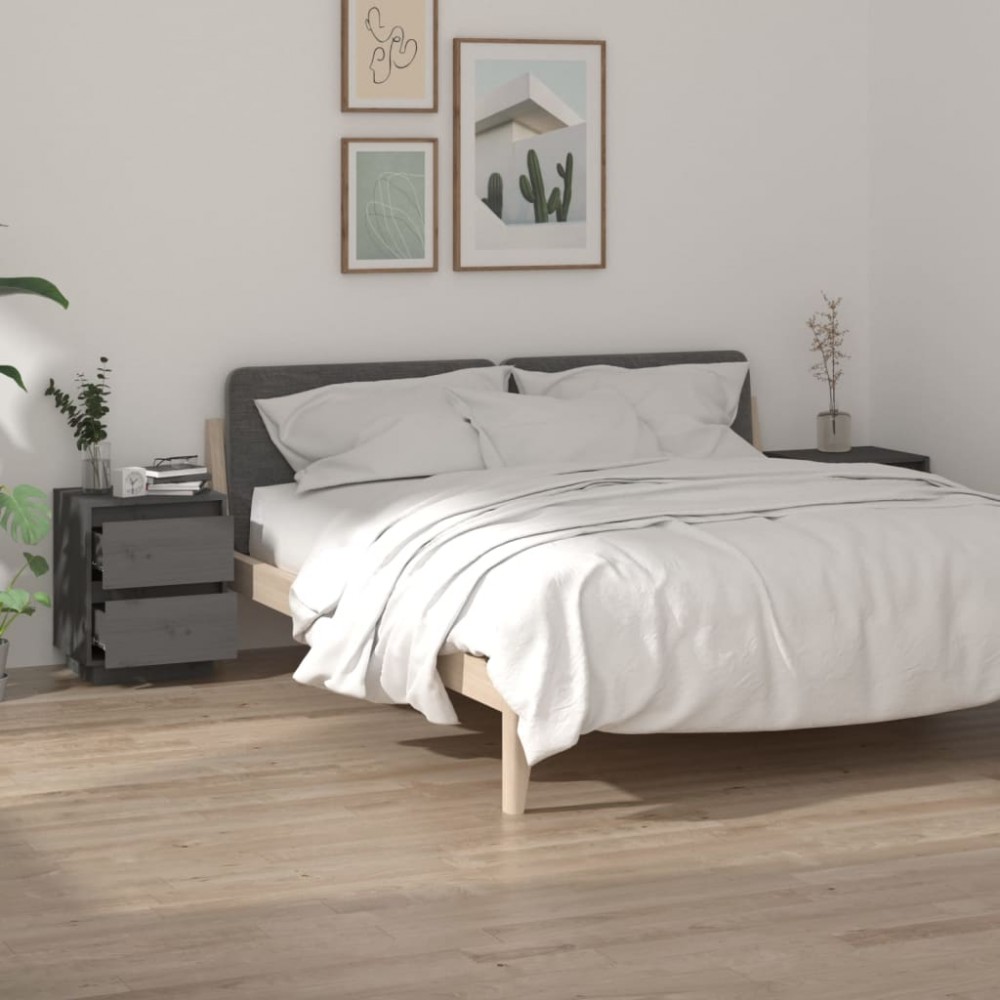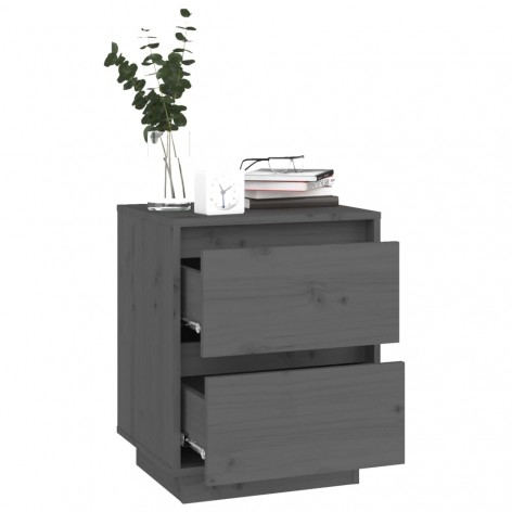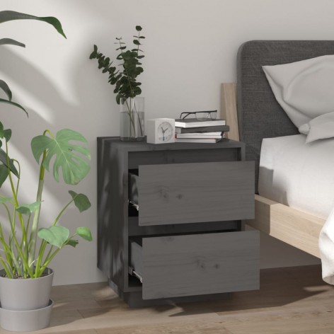 Comodini 2 pz Grigi 40x35x50 cm in Legno Massello di Pino
