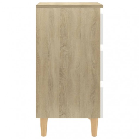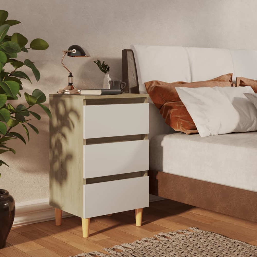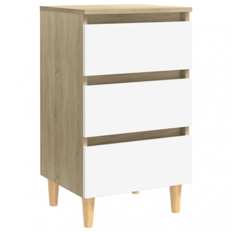 Comodino Gambe Legno Massello Bianco e Rovere Sonoma 40x35x69cm