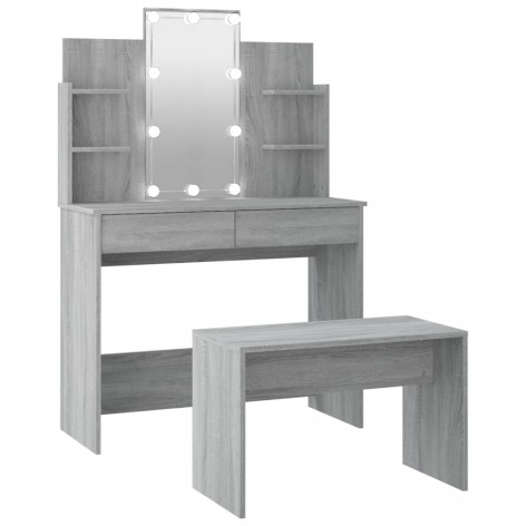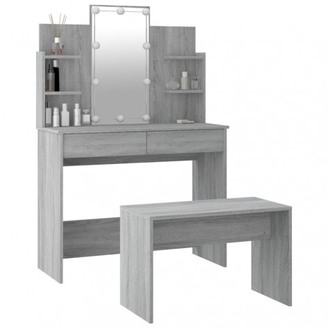 Set Tavolo da Toeletta con LED Grigio Sonoma Legno Multistrato