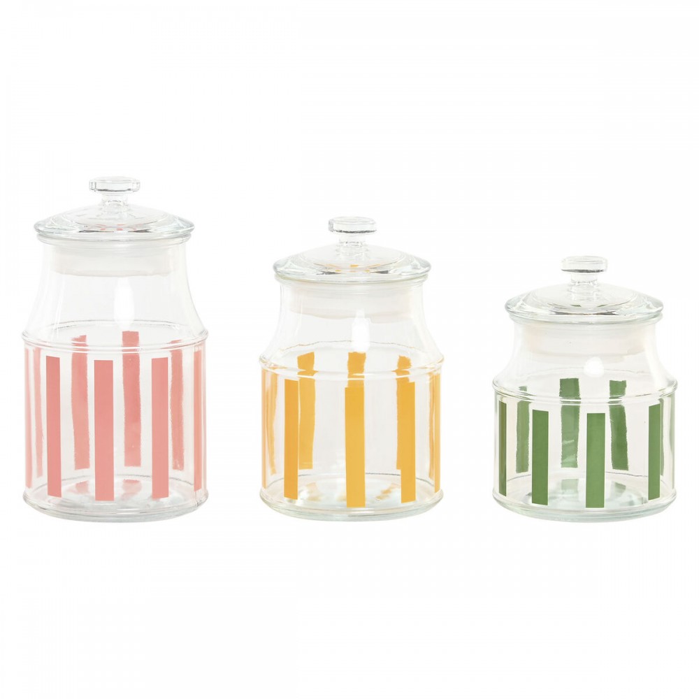 Set di 3 Barattoli Home ESPRIT Multicolore Righe Moderno 1 L 1,2 L 3 Pezzi