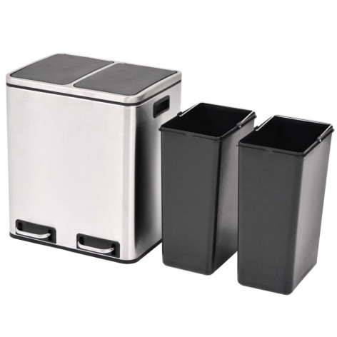 Pattumiera a Pedale per Riciclo in Acciaio Inossidabile 30 L