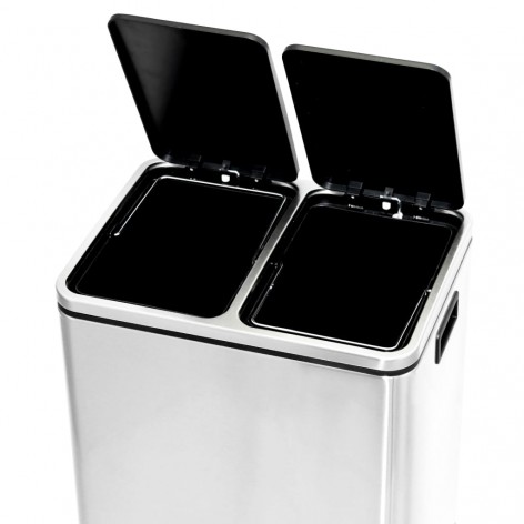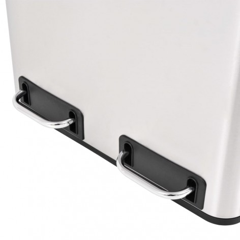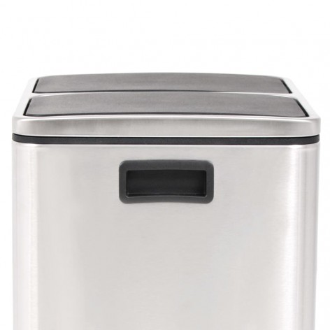 Premendo i pedali e possibile aprire e chiudere il coperchio senza alcuno sforzo. L'involucro esterno è realizzato in acciaio inossidabile con finitura opaca, che conferisce al prodotto un aspetto elegante. I secchi interni, i coperchi e la base sono realizzati in materiali resistenti. I coperchi a chiusura morbida si aprono/chiudono senza produrre troppo rumore e quando sono chiusi prevengono la diffusione degli odori. Ogni secchio interno è dotato di una grande maniglia e può essere rimosso facilmente.