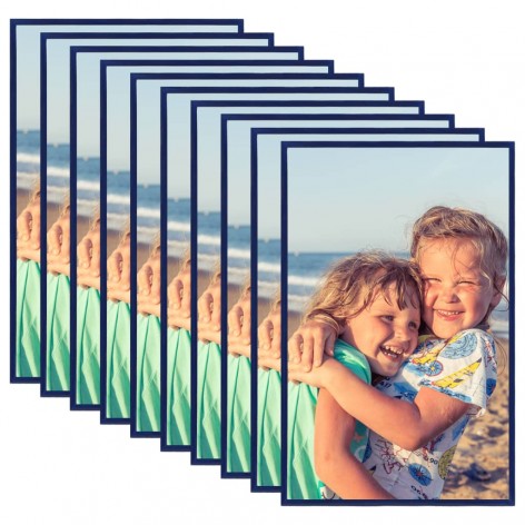 Cornici Foto Collage 10 pz per Parete o Tavolo Blu 10x15 cm MDF
