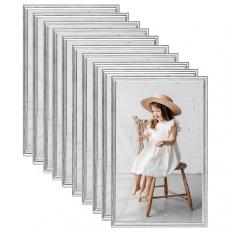 Cornici Foto Collage 10pz per Muro o Tavolo Argento 13x18cm MDF