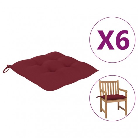 Cuscini per Sedie 6 pz Rosso Vino 50x50x7 cm in Tessuto