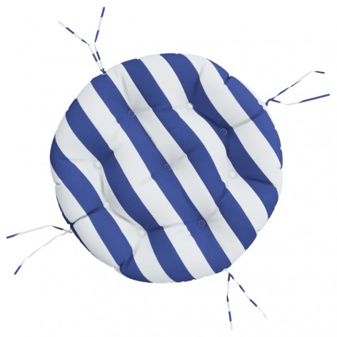 Cuscino Rotondo Righe Blu Bianche Ø 60x11 cm in Tessuto Oxford