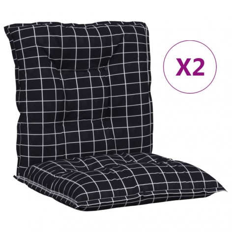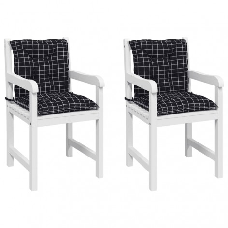 Cuscini Sedia Schienale Basso 2 pz Motivo a Quadri Nero Tessuto